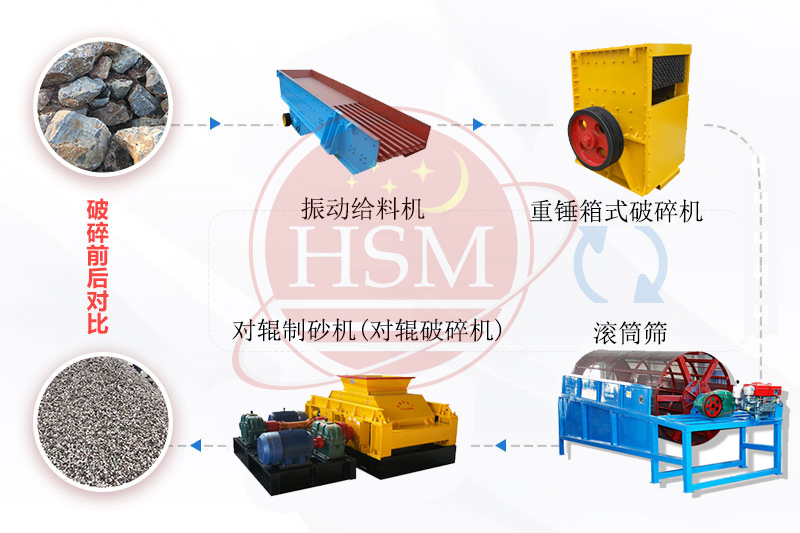 時(shí)產(chǎn)100噸對輥破碎機(jī)生產(chǎn)線制砂生產(chǎn)流程